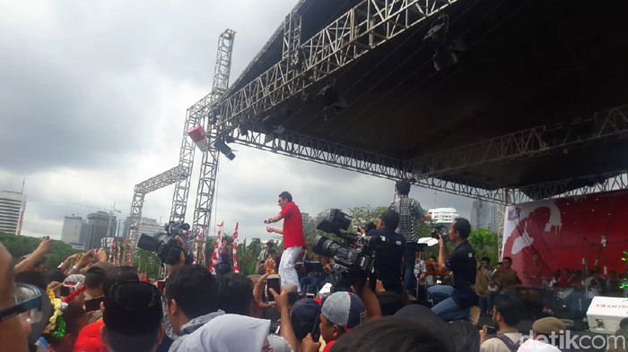 Foto: Sandiaga Uno di Kirab Kebangsaan di Monas. (Marlinda-detikcom)