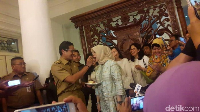 Foto: Wagub DKI Sandiaga Uno memberikan surprise untuk istri yang ulang tahun ke-48. (Zhacky-detikcom) |