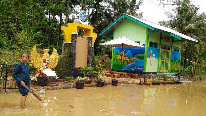 "Banjir sebagian besar sudah surut menyisakan genangan di wilayah Kecamatan Pacitan dengan ketinggian kurang lebih 20 sampai 30 cm, hal ini disebabkan area cekungan yang tidak ada drainase sehingga air tidak bisa keluar," kata Kepala Humas BNPB Sutopo Purwo Nugroho dalam keterangannya, Sabtu (2/12/2017).