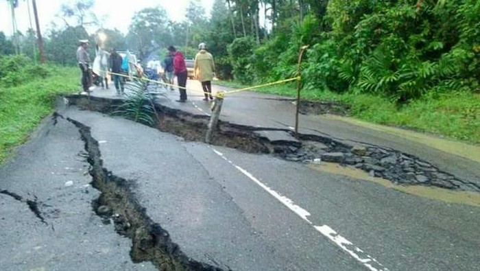 Informasi yang diterima detikcom, puluhan meter jalan nasional kawasan itu mengalami keretakan bahkan nyaris putus dan amblas. Kejadian itu lokasinya tepat di Kilometer 22, Dusun Mina, Desa Krueng Simpo, Kecamatan Juli, Bireun.
