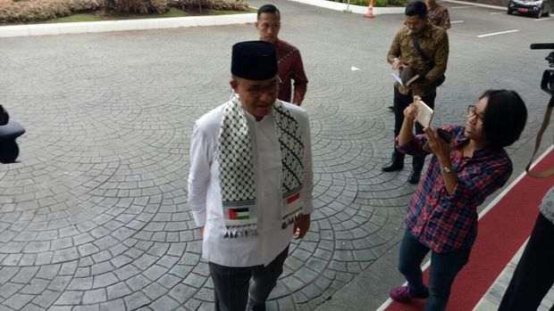 Pantauan di lokasi, Anies yang tampak masih mengenakan syal Indonesia-Palestina itu, tiba sekira pukul 11.13 WIB. Anies tampak datang diiringi dua ajudannya, yang datang menggunakan ojek online.