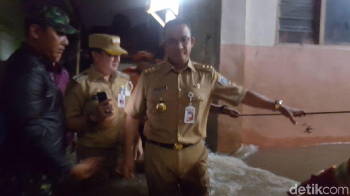 "Tim kesehatan sedang berjalan menuju ke sini dan tim Tata Air sudah saya instruksikan menutup tanggul yang jebol," ujar Anies saat meninjau banjir di Jati Padang, Senin (11/12/2017).