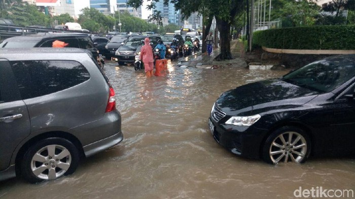 Genangan di dekat Balai Kartini, Kuningan, Jaksel, Selasa (12/12/2017) Foto: Seysha Desnikia-detikcom