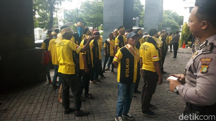 Foto: Dukung Setya Novanto, sejumlah massa tiba di PN Tipikor. (Haris-detikcom)