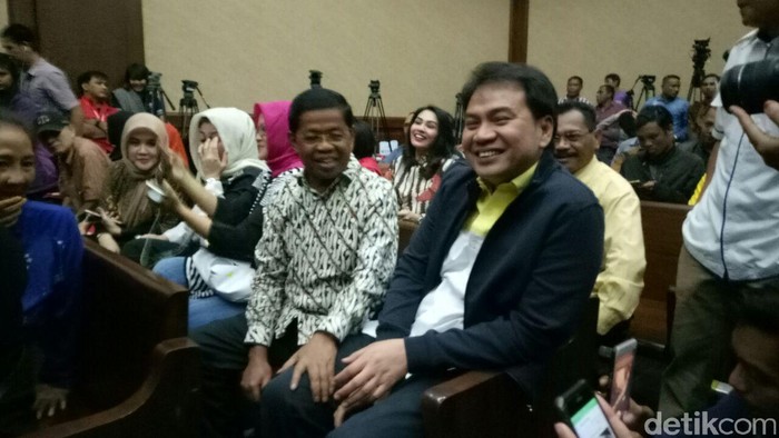 Dia juga terus mengumbar senyum kepada wartawan dan menyapa istri Novanto, Deisti Astriani Tagor. Nama Aziz belakangan ramai dibahas karena disebut dalam surat pengunduran diri Novanto.