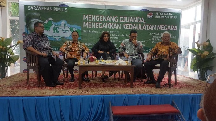 Hal ini disampaikan Susi dalam diskusi yang digelar Pergerakan Indonesia Maju (PIM) di Sekretariat PIM, Jl Brawijaya VIII, Kebayoran Baru, Jakarta Selatan, Rabu (13/12/2017). Diskusi ini mengusung tema 'Mengenang Djuanda, Menegakkan Kedaulatan Negara'.