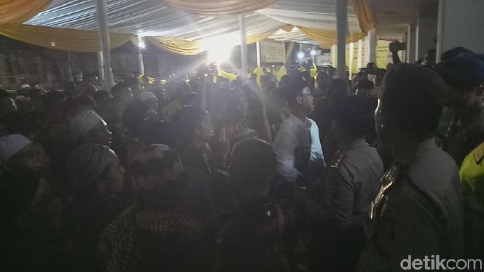 "Hidup pak polisi ganteng," balas massa seraya menjauh dari pintu pleno.