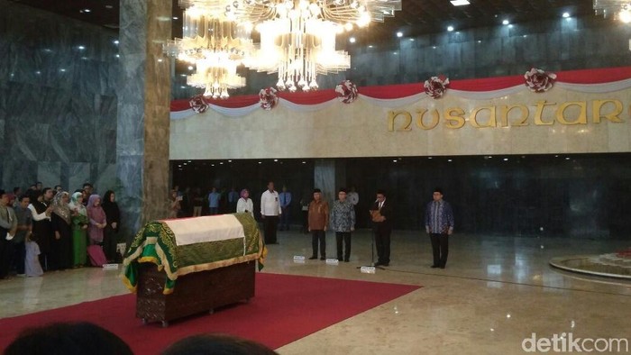 "Kami atas nama MPR RI, DPR RI, DPD RI menyerahkan kembali jenazah almarhum dari AM Fatwa untuk selanjutnya akan diberangkatkan ke Taman Makam Pahlawan Kalibata," kata Oesman di lokasi persemayaman, gedung Nusantara DPR, Senayan, Jakarta, Kamis (14/12/2017).