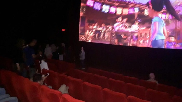 Meski begitu, penonton yang berhamburan keluar tak terlalu panik. Mereka berbaris keluar dari gedung bioskop dengan tertib.