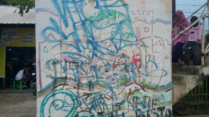 "Ini sudah lama dicoret pakai Pilox, tidak tahu siapa yang bikin. Karena tiba-tiba saja tulisan sudah ada di tiang LRT ini, warga sekitar juga tidak ada yang tahu," kata Anwar, salah seorang warga, saat ditemui detikcom, Senin (18/12/2017).