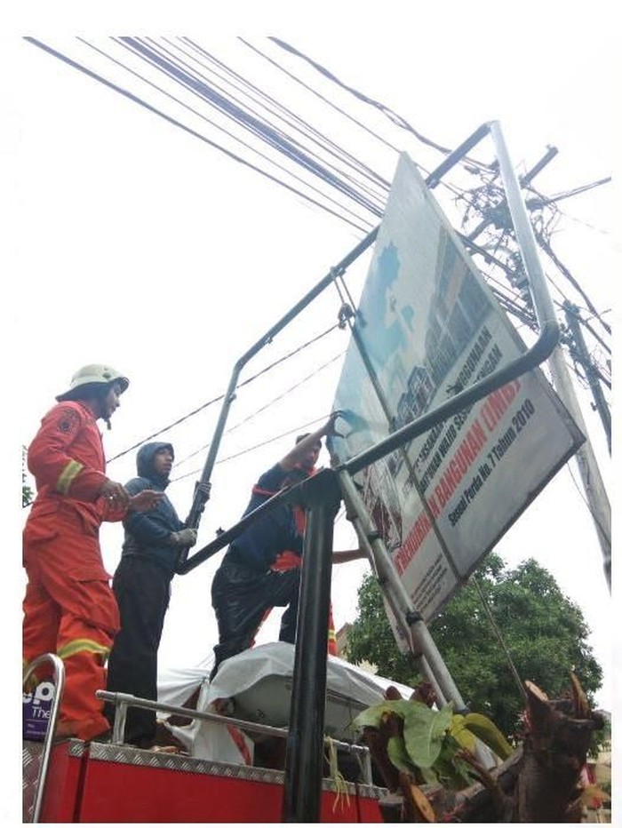 Dia mengatakan reklame tersebut diinformasikan oleh petugas pemadam kebakaran Jakpus pada 13.48 WIB. Reklame tersebut berada di depan Klinik Mantap di Jalan Kramat Sentiong RT 06/11, Kramat, Senen, Jakpus.