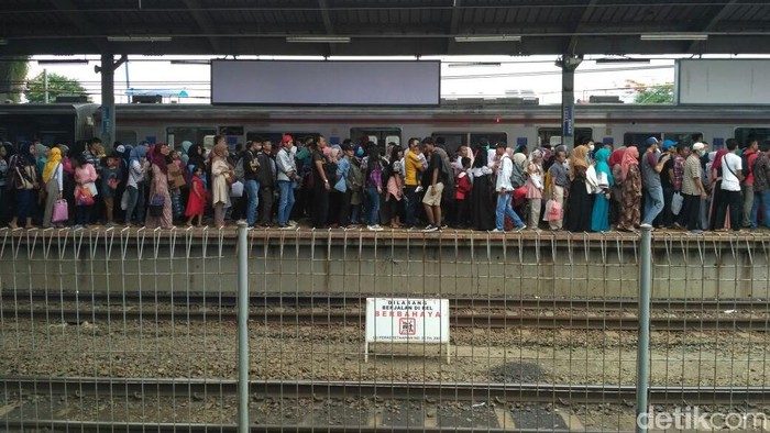 Pantauan detikcom, suasana Stasiun Tanah Abang di tengah hari menjelang siang ini terpantau ramai. Peron Stasiun Tanah Abang penuh oleh penumpang yang ingin turun ataupun menaiki kereta. Selama libur panjang, kondisi peron tidak pernah renggang.