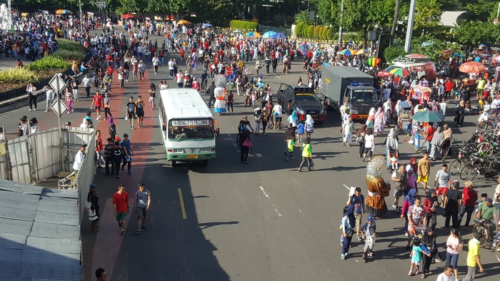 Pantauan detikcom, Minggu (31/12/2017) pukul 07.30 WIB di sekitaran Bundaran HI, Jakarta Pusat, ratusan warga mendatangi lokasi tersebut. Banyak dari mereka terlihat mengenakan pakaian olahraga, bahkan banyak juga yang membawa sepeda.