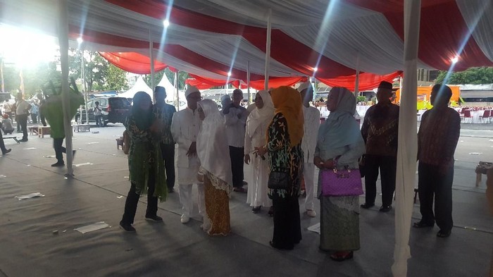 Foto: Calon pengantin peserta nikah massal Pemprov DKI mulai berdatangan di lokasi acara. (Zunita-detikcom) |