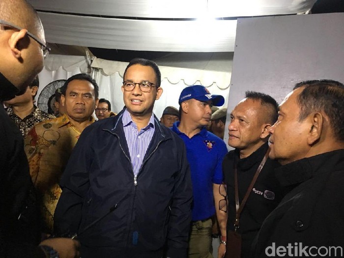 Setibanya di lokasi, Anies sempat menyalami warga yang menyambutnya. Tak lama kemudian, ia masuk ke dalam tenda yang telah disediakan.