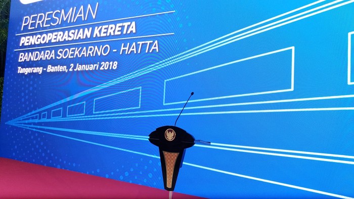 Pagi ini, umbul-umbul biru peresmian pengoperasian Kereta Bandara sudah terpasang. Pasukan Pengamanan Presiden (Paspampres) sudah berjaga-jaga di lokasi, tempat Kereta Bandara yang terhubung dengan moda transportasi skytrain ke terminal-terminal Bandara.
