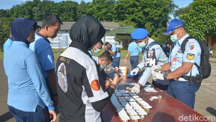 Prajurit TNI AU di Lanud Halim Perdanakusuma, Jakarta Timur menjalani tes urine. Foto: Dok. Dispen Lanud Halim Perdanakusuma |