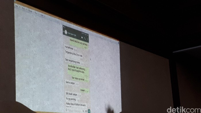 Jaksa kemudian menampilkan percakapan Sugito dan Anam. Isi pesan itu kemudian dikroscek ulang kepada Anam.