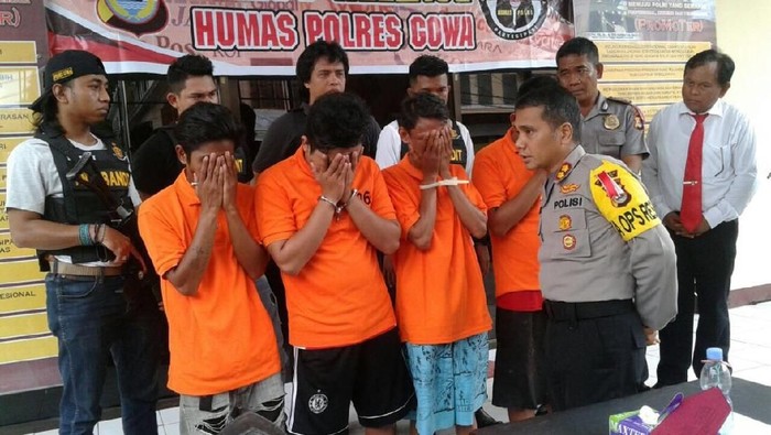 Kelima pelaku adalah MI alias Jibang (17), WY alias Ono (23), LH alias Akim (23), FD alias Daus (25), dan KSR alias Isar (30). Mereka ditangkap tim Anti-Bandit Polres Gowa di lima lokasi berbeda pada Kamis (4/1) kemarin.