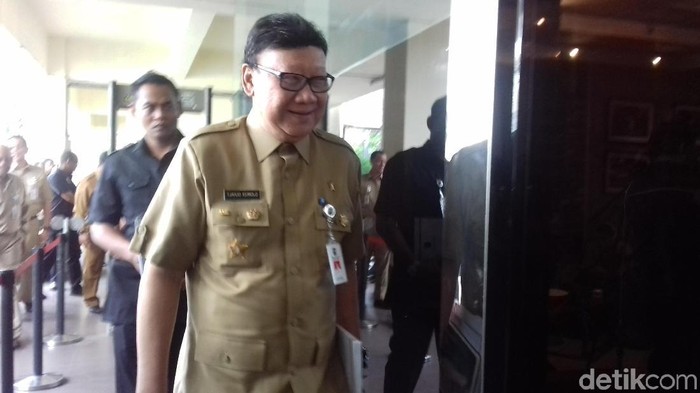 Pantauan detikcom, Tjahjo datang ke kantor Bawaslu, Jl MH Thamrin, Jakarta Pusat, sekitar pukul 13.54 WIB, Selasa (9/1/2018). Tjahjo langsung menuju ruang pertemuan di lantai dua.