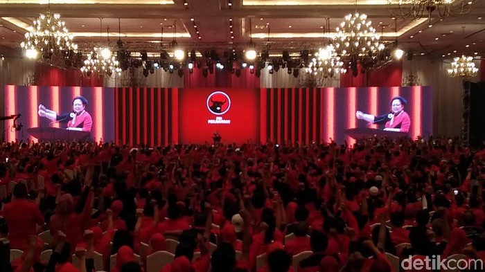 Api semangat para kader PDIP yang hadir semakin menyala. Teriakan mereka terdengar kencang di hall JCC Senayan. Mereka menyambut pidato Megawati sambil mengepalkan tangan ke atas.