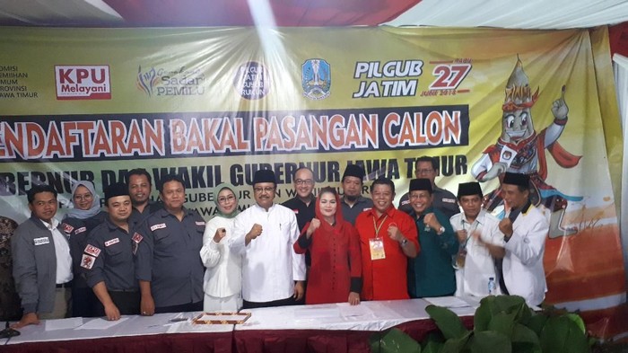 "Akhirnya saya ditakdirkan bersama Mbak Puti. Ini benar-benar takdir. Saya nggak merencanakan. Tapi ini takdir. Di detik-detik terakhir pendaftaran ini, kami diantar oleh empat parpol. Terima kasih, PKB. Terima kasih, PDI Perjuangan. Terima kasih, PKS. Dan terima kasih, Partai Gerindra," kata Saifullah Yusuf saat memberikan pidato setelah diterima pendaftarannya di kantor KPU Jatim, Jalan Raya Tenggilis, Surabaya, Rabu (10/1/2018) malam.