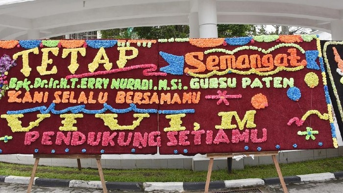 Karangan yang berisi ucapan dukungan ini memenuhi baik di dalam maupun seputaran kantor Gubernur Sumut, Jalan Diponegoro, Medan.