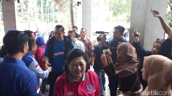 Pantauan detikcom, AHY dan Ani tiba di lokasi, Sabtu (13/1/2018) pukul 09.00 WIB. Setelah turun dari mobil keduanya langsung menyalami kader yang menyambutnya.