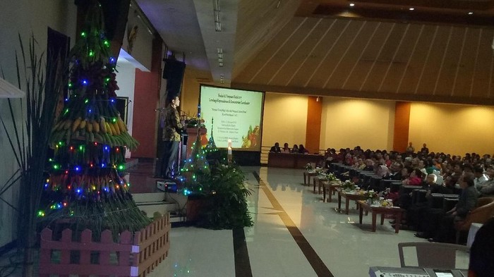 Keduanya disambut hangat panitia dan peserta acara perayaan Natal. Acara itu diawali dengan ibadah sekitar pukul 17.30 WIB. Lalu, puncak perayaan berlangsung sekitar pukul 19.20 WIB.