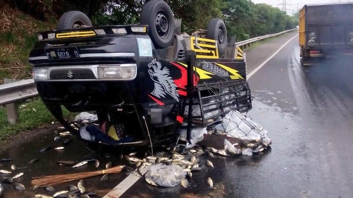 "Kejadian ini terjadi sekitar pukul 07.21 WIB. Truk bermuatan ikan terbalik di KM 40 Tol Asih, arah Kampung Rambutan," kata petugas NTMC, Ade saat dihubungi detikcom, Minggu (14/1/2018).