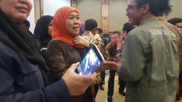 Foto: Khofifah Indar Parawansa berpamitan dengan jajaran pegawai dan pejabat di lingkungan Kemensos usai acara serah terima jabatan dengan Idrus Marham. (Zunita-detikcom)