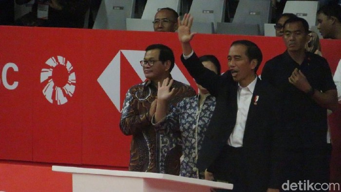 Jokowi tiba di Istora GBK, Senayan, Jakarta, Selasa (23/1/2018) sekitar pukul 17.30 WIB. Para menteri turut mendampingi Jokowi seperti Seskab Pramono Anung, Mensesneg Pratikno, Menko PMK Puan Maharani, Menteri PUPR Basuki Hadimuljono, dan Menpora Imam Nahrawi.