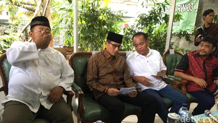 "Di sini ada tokoh masyarakat tokoh yang saya sebut bapak presiden karena dia spesialis demo di Balai klKota bapak Sahid Iqbal," kata Sandi.