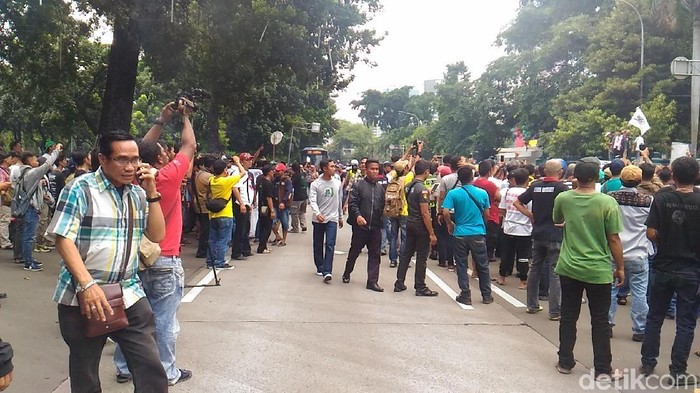detikcom sekitar pukul 12.20 WIB, Senin (29/1/2018), massa mulai menyuarakan tuntutan terkait Permenhub Nomor 108 Tahun 2017 tentang Penyelenggaraan Angkutan Orang dengan Kendaraan Bermotor Umum Tidak dalam Trayek.