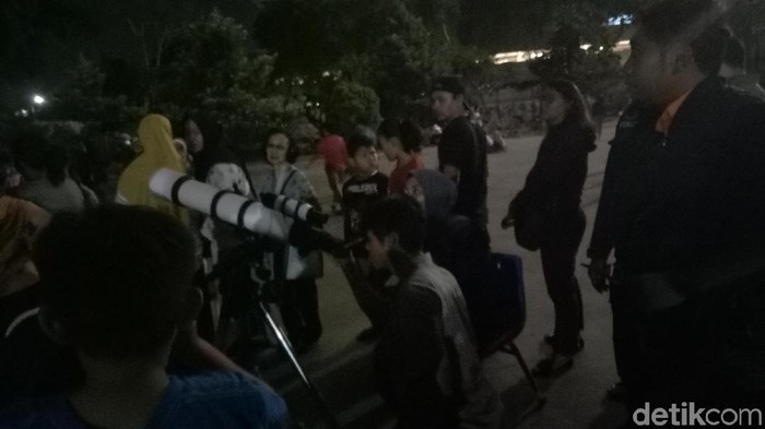 "Kalau pakai teleskop lebih jelas aja sih tapi tergantung juga sih karena diburu-buru gitu kan jadi kadang kelihatan kadang enggak jadi nggak fokus gitu. Kalo perbedaannya ada lebih gede," cerita Dewi.