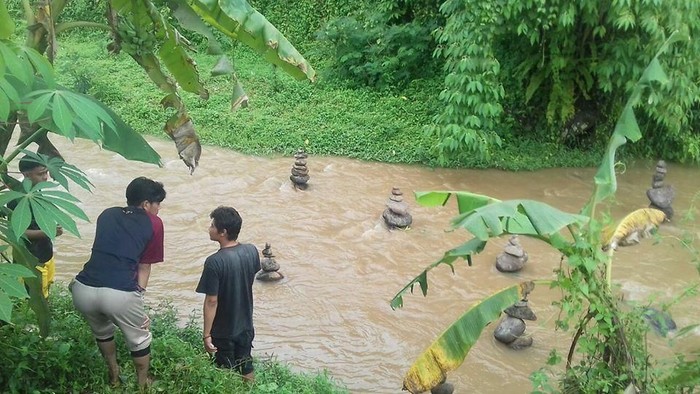 Batu bersusun rapi sebanyak 90 buah paket susunan itu dipastikan bukan fenomena alam apalagi mistis. Ada warga yang melihat sekelompok pemuda menyusun batu-batu itu. Namun apa motif dan bagaimana cara batu-batu tersebut disusun di tengah sungai masih misterius. (fjp/fjp)