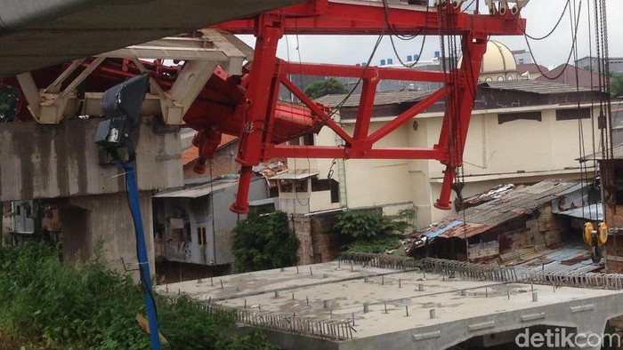Crane proyek double-double track jalur KA ambruk di Jatinegara, Jaktim, Minggu (4/2/2018) Foto: Ibnu Hariyanto-detikcom