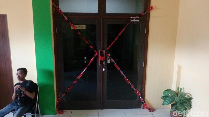 "Ini ruang kerja Bupati yang disegel, tapi saya tak tahu nyegelnya kapan. Karena saya baru dinas pagi tadi," kata anggota Satpol PP bernama Rohman di lokasi.