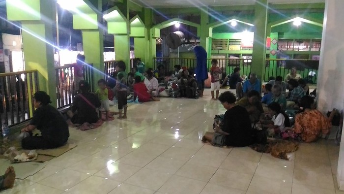Sellian (berkerudung putih motif bunga) ikut mengungsi. (Samsudhuha Wildansyah/detikcom)