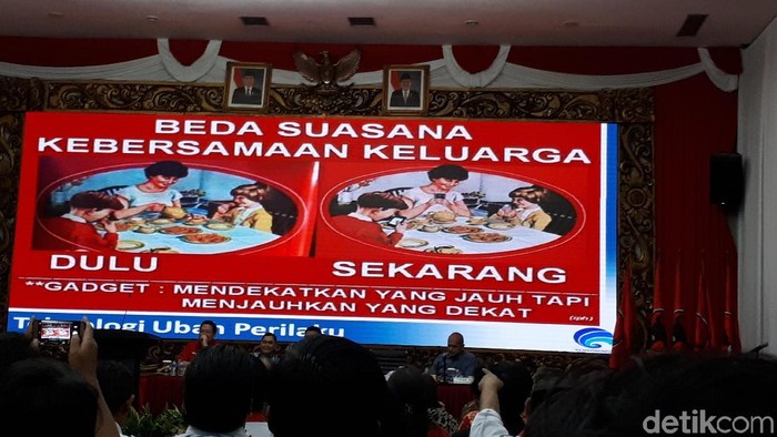 "Sekarang dengan WhatsApp kita kirim pesan, aku kangen kamu. Kirim, centang dua, terus nggak di-read. Satu menit, dua menit, setengah jam, nggak di-reply langsung telepon. Kamu di mana, ngapain, (padahal) zaman dulu nggak ada masalah," kata tenaga ahli Kominfo, Donny Budi Utoyo, dalam diskusi publik 'Melawan Hoax' di kantor DPP PDIP, Jalan Diponegoro, Jakarta Pusat, Jumat (9/2/2018).