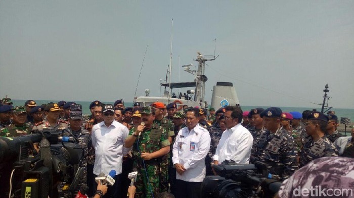 Rombongan Panglima TNI bersama BNN tiba di lokasi di Lanal Batam, Kepulauan Riau, sekitar pukul 11.00 WIB, Minggu (11/2/2018). Ketua DPR RI Bambang Soesatyo (Bamsoet), Kepala BNN Komjen Budi Waseso (Buwas), dan Deputi Pemberantasan BNN Irjen Arman Depari, serta Kabareskrim Komjen Ari Dono Sukmanto hadir.