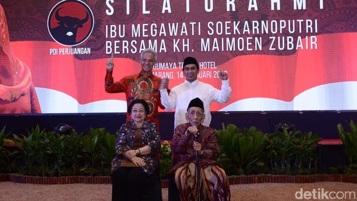 Silaturahmi dilakukan di Hotel Gumaya setelah rakerdasus tertutup PDIP. Pertemuan Megawati dan Mbah Moen, sapaan Maimoen, diawali dengan makan malam.