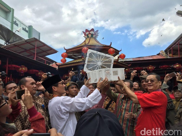 "Melepas burung itu, selalu, dan ini merupakan suatu tradisi. Bahwa kita melepas burung untuk terbang tinggi. Sama juga harapan kita bahwa kita harapannya Jakarta juga terus meningkat kesejahteraan bagi seluruh warga," kata Sandiaga di Vihara Dharma Bhakti, Jalan Kemenangan III, Glodok, Jakarta Barat, Jumat (16/2/2018).