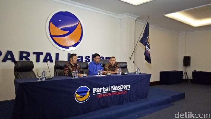 Sekjen Partai NasDem Johnny G Plate (tengah). (Denita Matondang/detikcom)