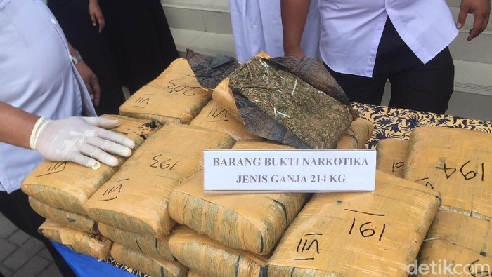 "Barang bukti yang diamankan 214 kilogram ganja, dua unit HP dan sebilah pisau. Saat ini pelaku masih diperiksa dan dilakukan pengembangan," tutur Marsauli. (jbr/jbr)