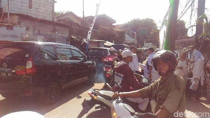 Sementara itu, arus lalu lintas di dekat masjid masih tersendat. Ada mobil yang mematikan mesinnya karena lalin padat.