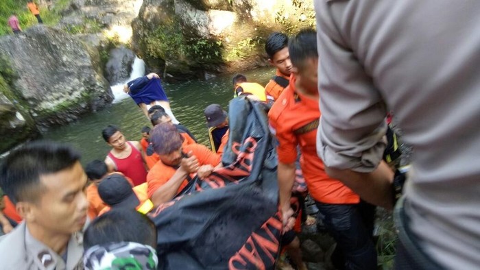 Korban ditemukan setelah 20 jam lebih pencarian di pusaran air terjun Sindang Derajat pada Selasa (20/2) sekitar pukul 13.50 WIB. Korban tenggelam setelah melompat dari atas bebatuan dan terbawa arus air.
