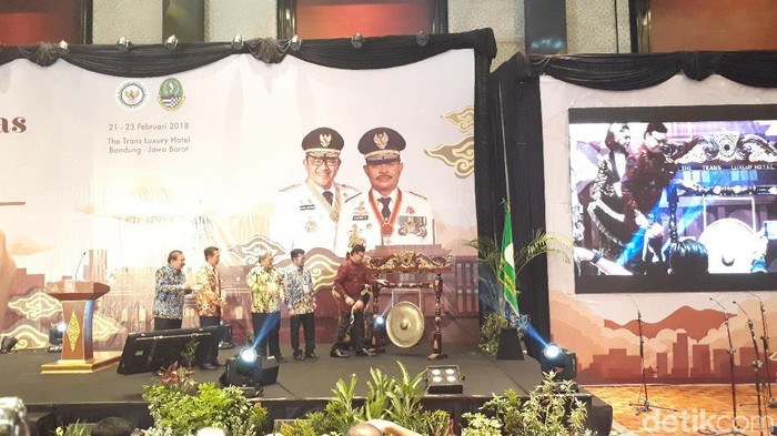 Pembukaan rakernas ketiga ini ditandai dengan pemukulan gong yang dilakukan langsung oleh Mendagri, yang mengenakan batik merah, didampingi Ketua APPSI Syahrul Yasin Limpo dan tuan rumah Gubernur Jabar Ahmad Heryawan.