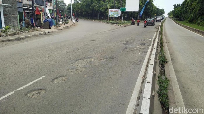 Foto: Jalan DI Panjaitan Jakarta Timur, banyak lubang berbahaya. (Jabbar Ramdhani/detikcom)