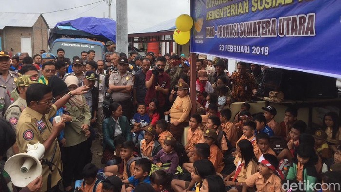 Mensos Idrus Marham mengunjungi pengungsi korban erupsi Sinabung, Jumat (23/2/2018) Foto: Jefris Santama-detikcom |